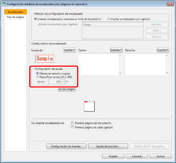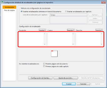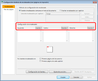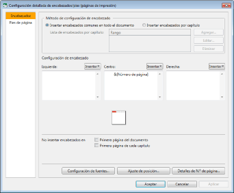 Para obtener información acerca de la configuración detallada de los encabezados/pies de página, consulte la siguiente sección.
