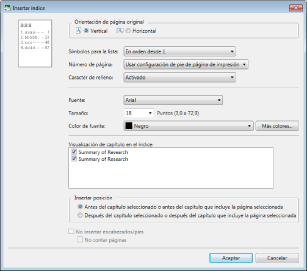 Seleccione la posición a insertar la tabla de contenidos.