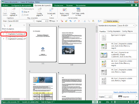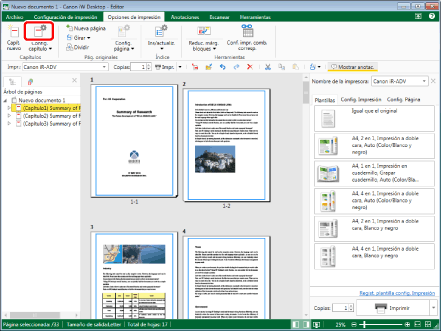 Haga clic en [Aplicar] para comprobar la vista preliminar del documento en la Ventana de trabajo sin cerrar [Configuración del capítulo].