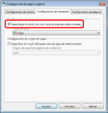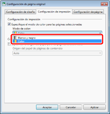 Si la impresora Canon seleccionada en [Impr.] no es compatible con la impresión en color, no se podrá especificar el modo de color por páginas.
