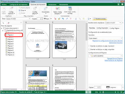 Seleccione la página para la que cancelará las filigranas en la pestaña [Árbol de páginas] de la Ventana de navegación.