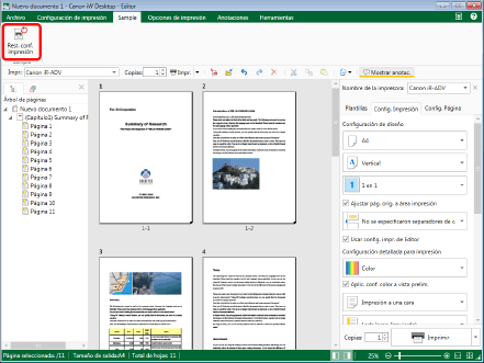 Al restablecer los ajustes de impresión, los ajustes de impresión cambian a los siguientes estados tras aplicar los ajustes [Igual que el original] a la plantilla de ajustes de impresión.