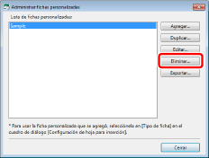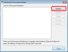 También puede mostrar [Administrar fichas personalizadas] desde el menú [Archivo] > [Configuración/Administración] > [Administrar fichas personalizadas].