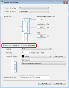 Marque esta casilla de verificación cuando vaya a imprimir los nombres de capítulo en el separador de índice.