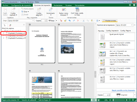 Haga clic en [Aplicar] para comprobar la vista preliminar del documento en la Ventana de trabajo sin cerrar [Configuración del capítulo].