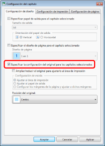 Para obtener más información acerca de cómo cancelar las opciones de configuración por capítulo, consulte la siguiente sección.