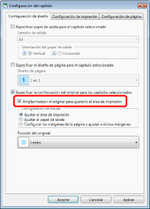 Configure este ajuste cuando seleccione [Ajustar al área de impresión]/[Configurar los márgenes de la página y ajustar a dichos márgenes] en [Configuración de escala].