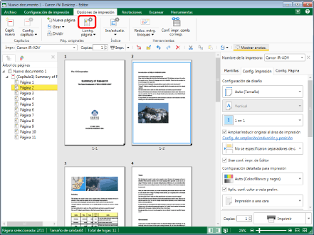 Haga clic en [Aplicar] para comprobar la vista preliminar del documento en la Ventana de trabajo sin cerrar [Configuración de página original].