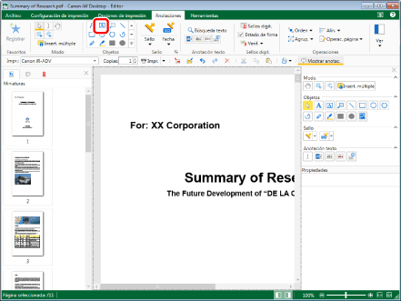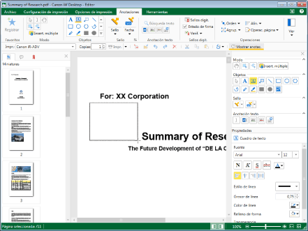 Para cambiar las propiedades de todo el cuadro de texto, seleccione la anotación. Para más información sobre cómo seleccionar una anotación, consulte:
