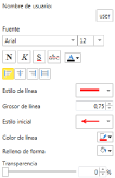 Si selecciona [Más colores] en [Color de fuente], en [Color de línea] o en [Relleno de forma], se mostrará [Color] y podrá establecer un color que no aparezca en [Color de fuente], en [Color de línea] ni en [Relleno de forma].