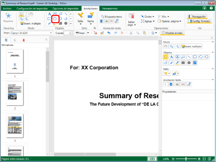 Esta operación también se puede realizar con los botones de herramienta. Si estos botones no aparecen en la barra de herramientas de Desktop Editor, siga estas indicaciones para visualizarlos.