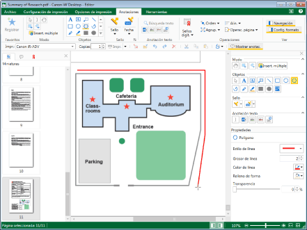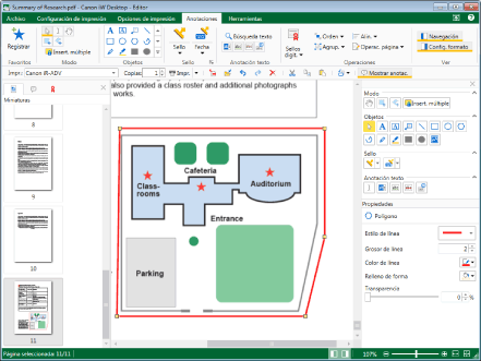 Si se ha seleccionado [Nube (pequeña)] o [Nube (grande)] en [Estilo de línea], las líneas sólidas aparecen para el marco de la anotación al mover un vértice.