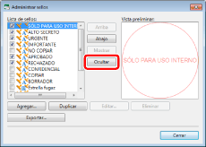 Seleccione un sello para ocultar de la [Lista de sellos].