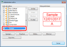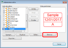 Seleccione un sello para eliminar de la [Lista de sellos].