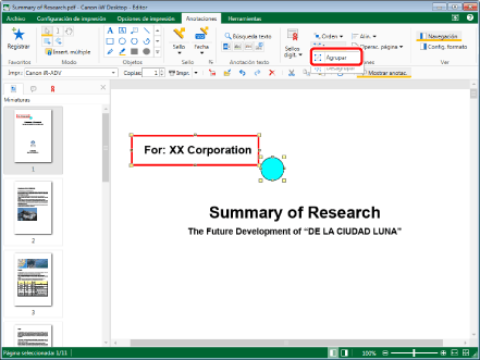 Puede crear grupos de grupos o agrupar un grupo con una sola anotación. Cuando agrupe dos grupos, se desharán sus agrupaciones previas y se reagruparán como un solo grupo.