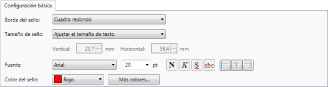 El tamaño del sello se establece automáticamente según el tamaño de fuente del texto. El tamaño del sello se muestra debajo de [Tamaño de sello] pero no puede editarse.