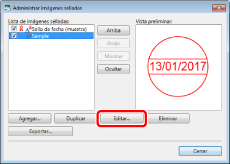 No se pueden editar las imágenes con sello que se registraron automáticamente durante la instalación. Sin embargo, puede editar las imágenes con sello duplicadas a partir de ellas. Para obtener más información sobre cómo duplicar imágenes con sello, consulte: