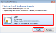 Seleccione el certificado con firma automática que desea eliminar y haga clic en [Aceptar].