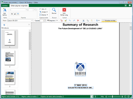 Las imágenes y el texto (objetos) se pueden mover en el Modo de edición de páginas originales de Desktop Editor.