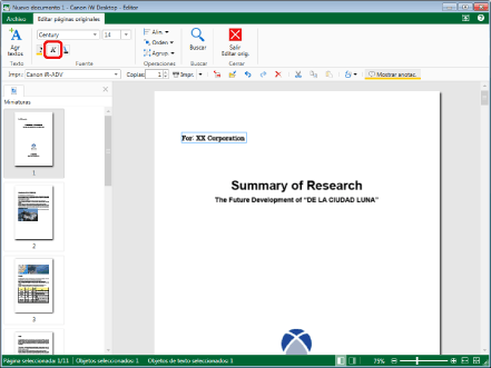 Puede modificar la fuente de varios objetos de texto simultáneamente.