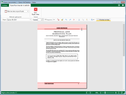 Las áreas en las que no se puede realizar la edición no se pueden establecer por página. Se establecen por documento.