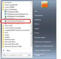 Para Windows 10, seleccione el menú [Inicio] > [Canon iW Desktop] > [List for Quick Printing Tool]. Se iniciará la List.