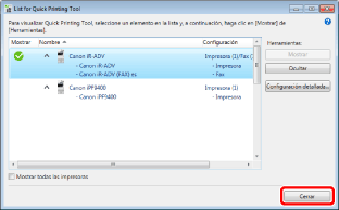 Cuando inicie la List, Quick Printing Tool se iniciará de forma automática en el mismo estado que cuando se cerró la última vez.