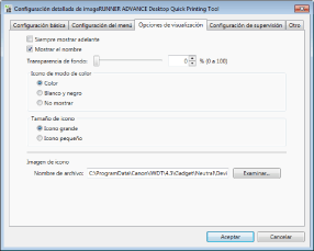 Permite seleccionar la imagen para utilizar como icono del dispositivo de Quick Printing Tool.