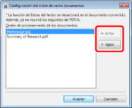 Si arrastra varios documentos, el nombre de documento del documento PDF creado será igual que el nombre del primer documento con la extensión cambiada a "*.pdf". Si ya existiera en el destino del documento PDF convertido otro documento con el mismo nombre, se añadirá un "(2)" al final del nombre.