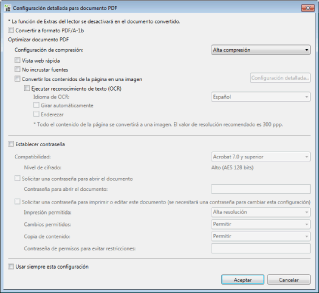 Seleccione los ajustes de compatibilidad de seguridad del documento PDF.