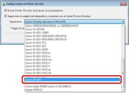 Si un dispositivo no se puede monitorizar porque se ha eliminado por otro usuario, etc., reinicie Printer Monitor o vuelva a configurar [Impresora].