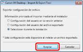 Para Windows 10, seleccione el menú [Inicio] > [Canon iW Desktop] > [iW Desktop Import & Export Tool].