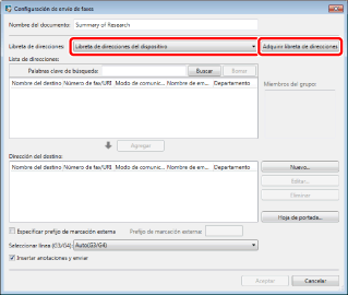 Envío de faxes utilizando la libreta de direcciones de un dispositivo