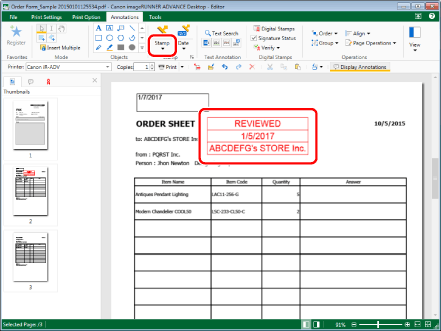 Use Desktop Editor to insert the stamp of the person in charge into the order form.