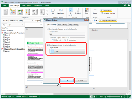 Select the [Specify page layout for selected chapter] check box in [Chapter Settings]. Then select [1 on 1] in [Page Layout] and click [OK].