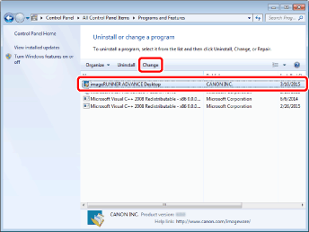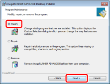 The program can be modified by selecting [Change] in the [Program Maintenance] of the Desktop Setup Wizard that is started using the "Desktop Installation Media".