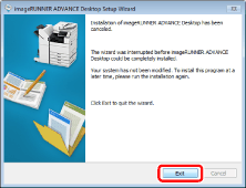 ![]() Click [Cancel] if you do not want to install the User's Guide. A message confirming whether you want to cancel the installation is displayed. Click [Yes] > [Exit] to cancel the change.