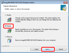 The program can be repaired by selecting [Repair] in the [Program Maintenance] of the Desktop Setup Wizard that is started using the "Desktop Installation Media".