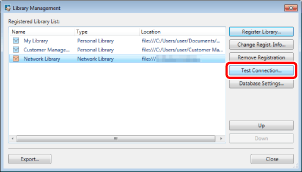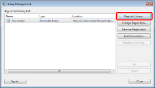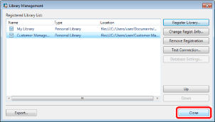Confirm that the destination has been added to [Registered Library List] and click [Close].