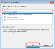 A Personal Library is a library that you use to manage documents on a local computer. If you do not need to share the documents with other users, register the folders on the local computer as a Personal Library.