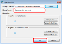 If [Connect to Library] or the dialog box for authentication is displayed, enter [User Name] and [Password], and click [OK].