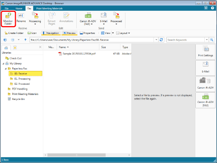 Select the folder to monitor in the Navigation Window or File List View Window of Desktop Browser.