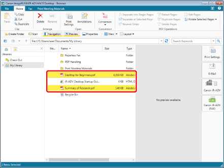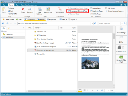 If you select [Keep original document], the two divided documents are registered to the library, and the original document before division is retained in the library.