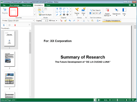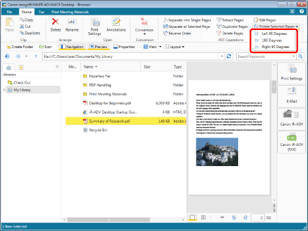 You can also rotate the page and save the document by clicking [Rotate Selected Pages Left 90 Degrees and Save] or [Rotate Selected Pages Right 90 Degrees and Save] on the Preview Window.