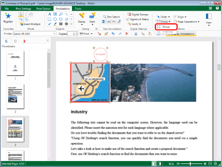 Even when annotations are grouped, you can select individual annotations in the group to edit properties and text, etc.