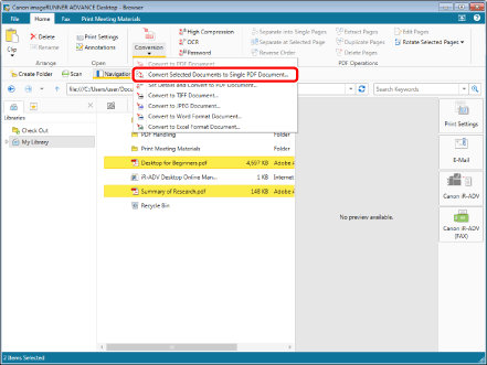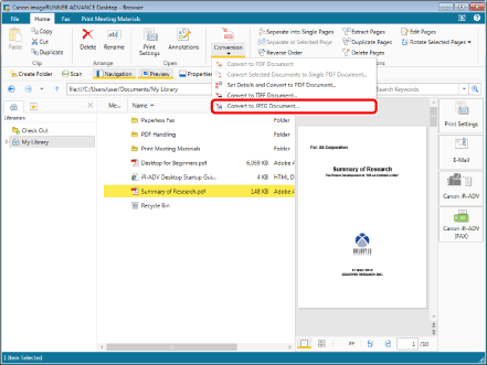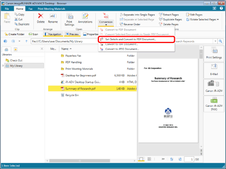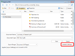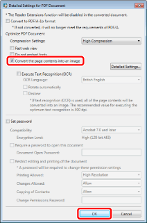 If you select [Set Details and Convert to PDF Document], [Detailed Settings for PDF Document] is displayed.