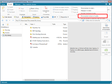 Ou bien, sélectionnez le menu [Fichier] > [Option] > [Personnaliser la barre d'outils].