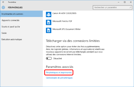 Sélectionnez [Périphériques et imprimantes] dans le menu [Imprimantes et scanners].