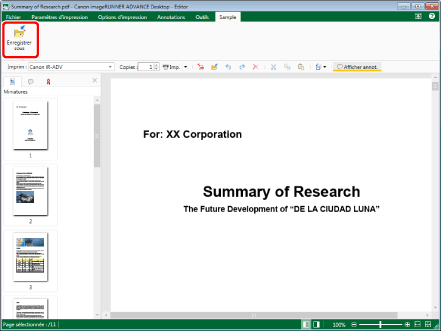 Pour plus d'informations sur les opérations possibles lorsque vous sélectionnez le menu [Fichier] > [Enregistrer sous] > [Enregistrer dans Therefore], consultez la section suivante.