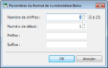 Spécifiez le nombre de chiffres du nombre de Bates. Vous pouvez indiquer entre 3 et 15 chiffres.